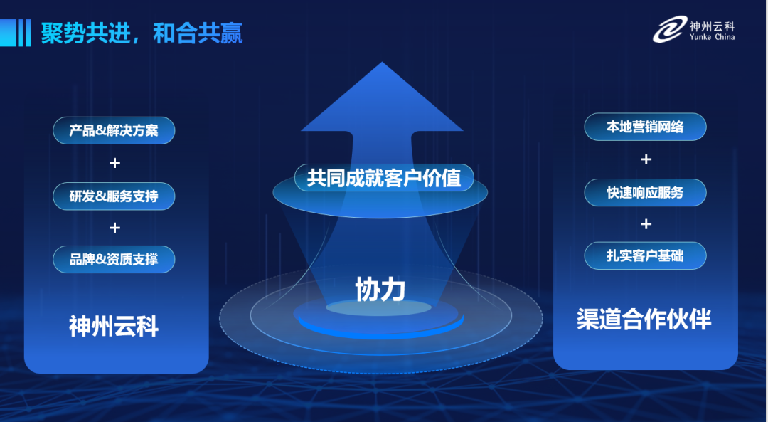 张锐指出,“神州云科深知合作伙伴对于业务发展的重要性,云科将在研发、产品和服务方面持续投入,做合作伙伴业务的坚实后盾,借助各位合作伙伴的营销和服务基础,通过我们的协力合作,能够共同成就客户价值。”
